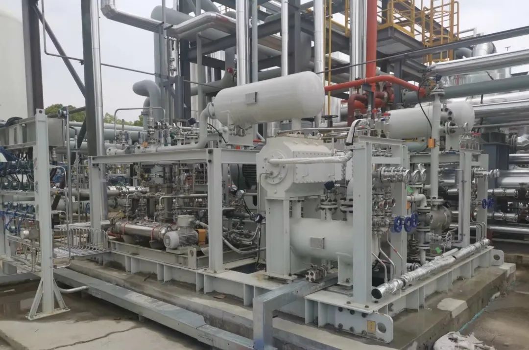 在石化行業的氫回收應用案例更是不勝枚舉,圖中為應用于中化集團的含氫氣化工尾氣回收裝置中的解析氣壓縮機